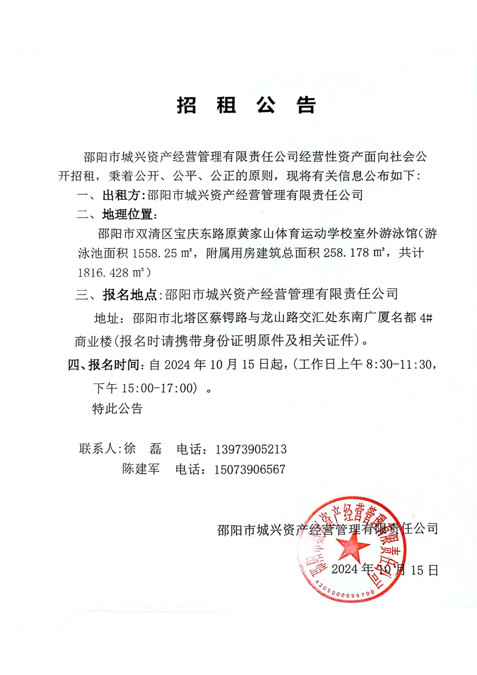 招租公告(體校游泳館)