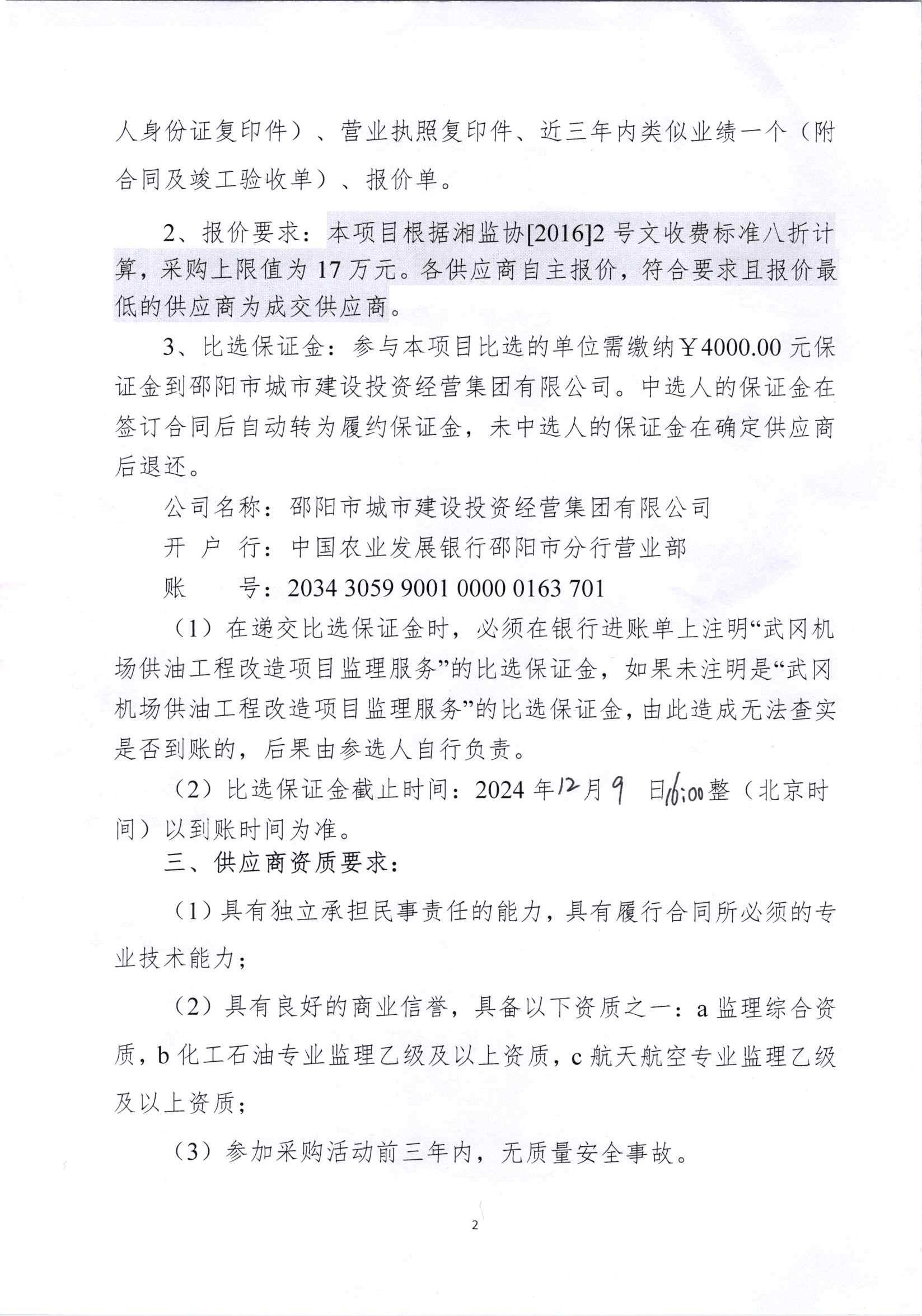 武岡機(jī)場供油工程改造項(xiàng)目監(jiān)理服務(wù)比選公告
