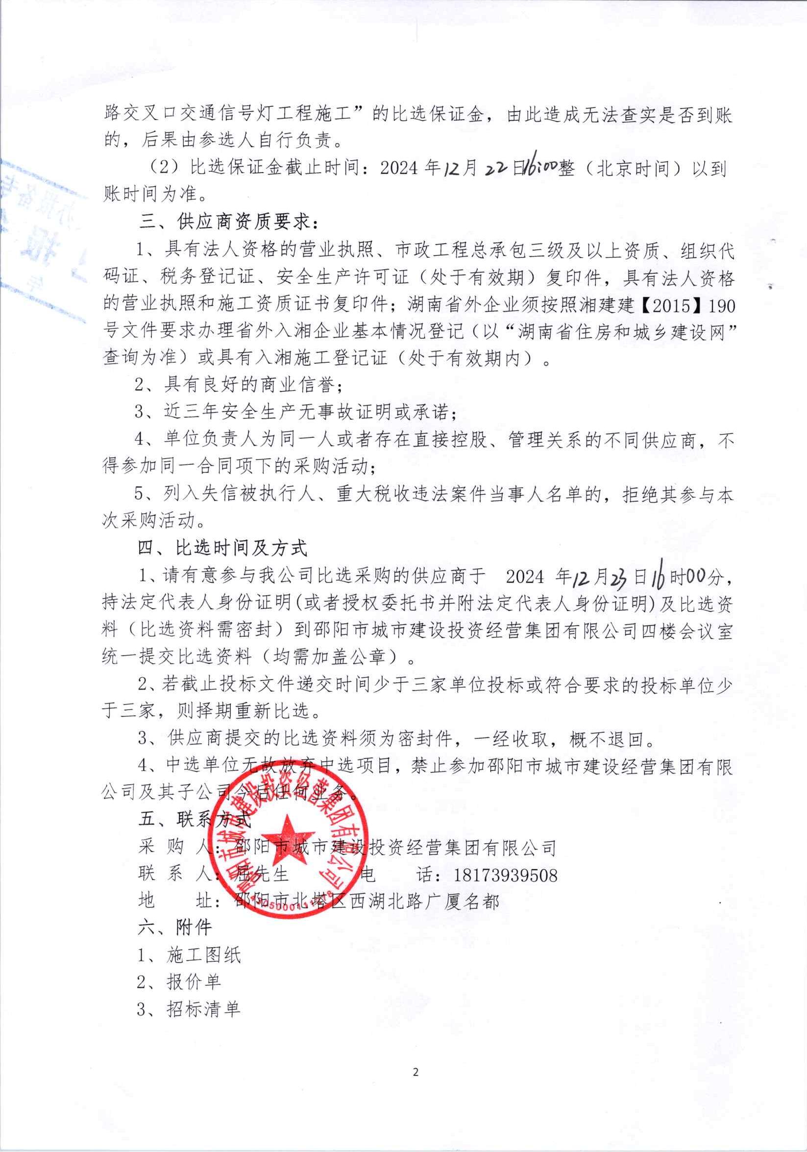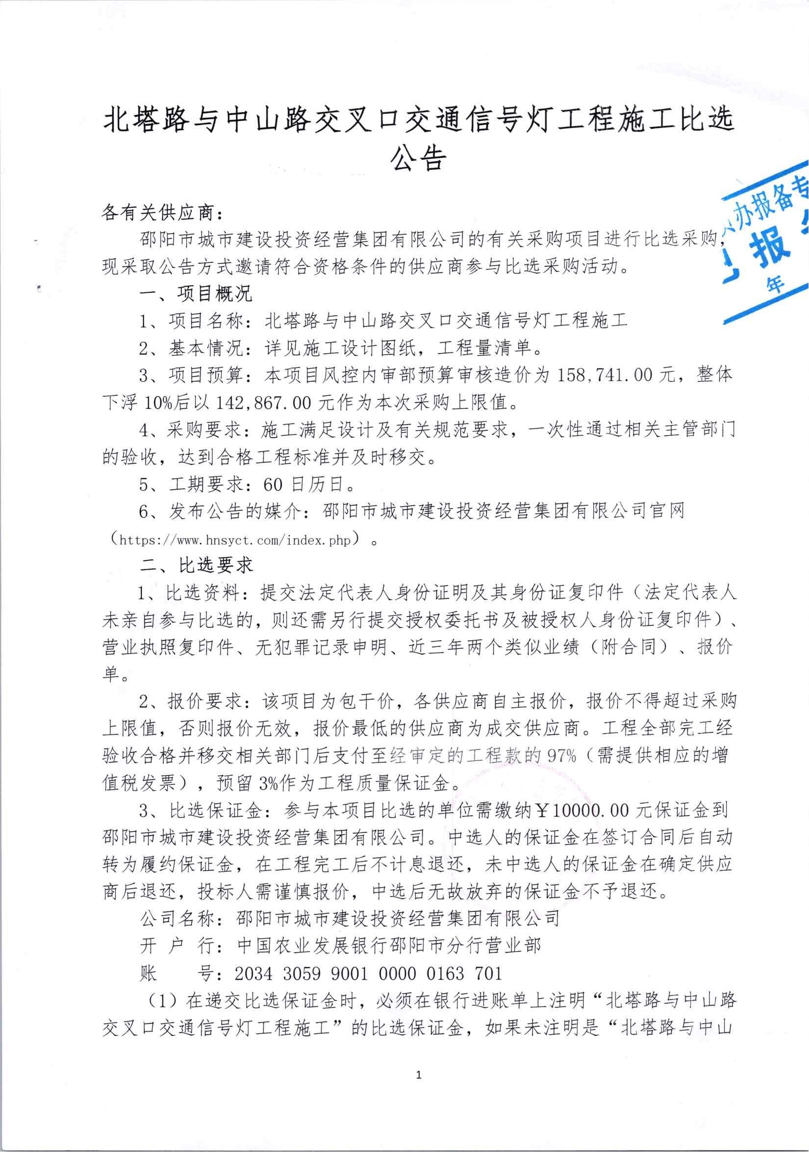北塔路與中山路交叉口交通信號燈工程比選公告