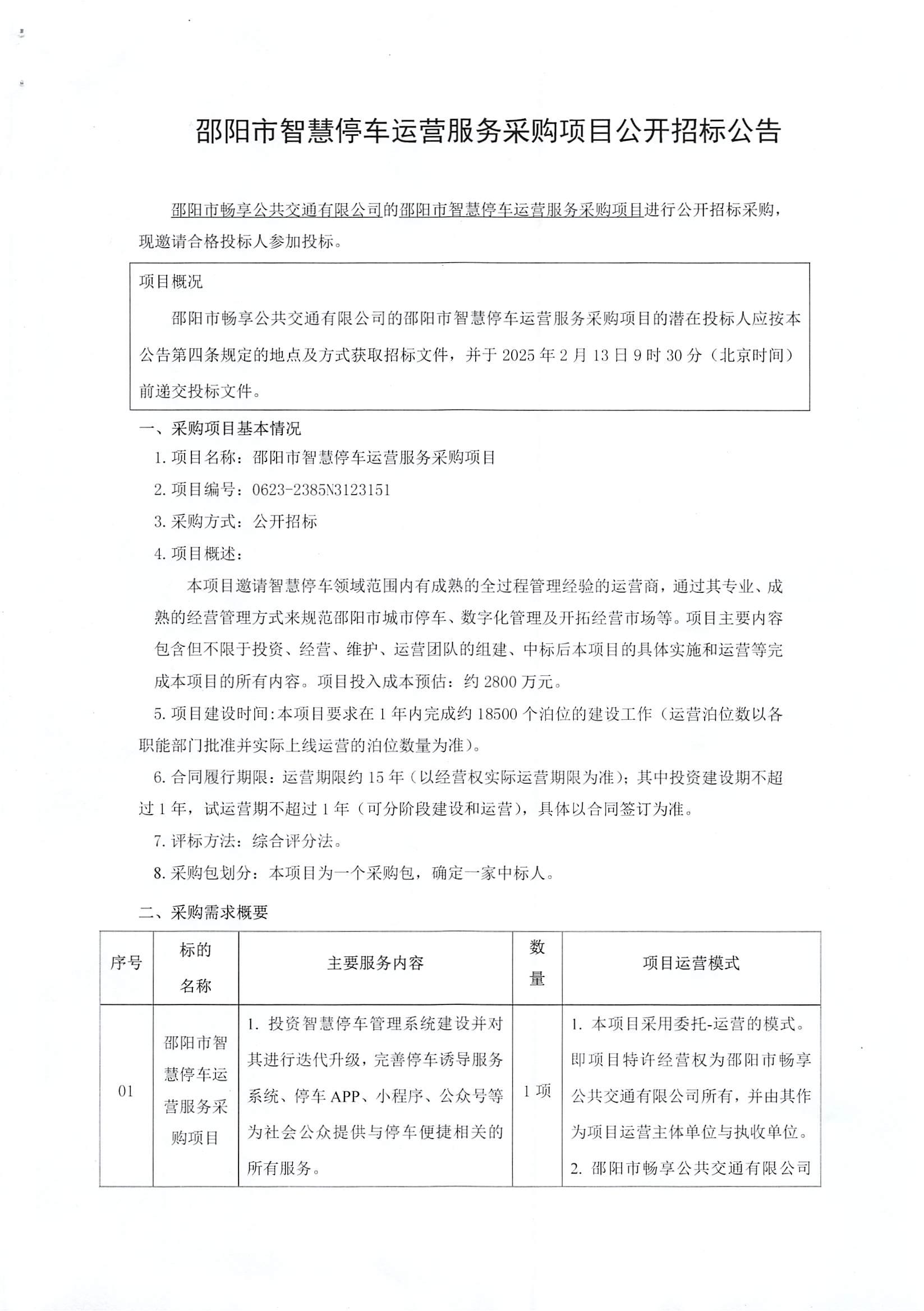 招標(biāo)公告-邵陽市智慧停車運(yùn)營服務(wù)采購項(xiàng)目