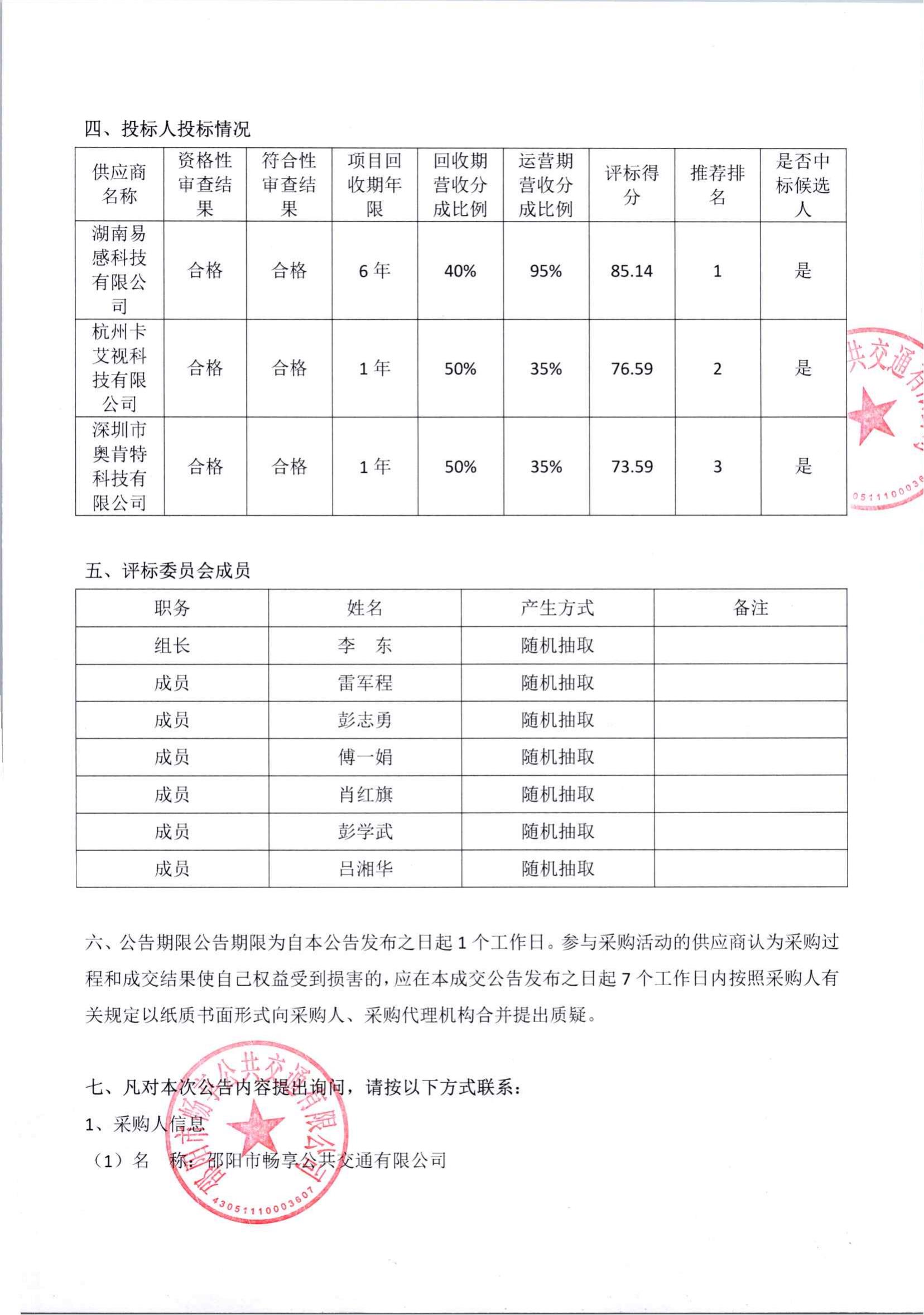 邵陽市智慧停車運(yùn)營服務(wù)采購項(xiàng)目中標(biāo)公告