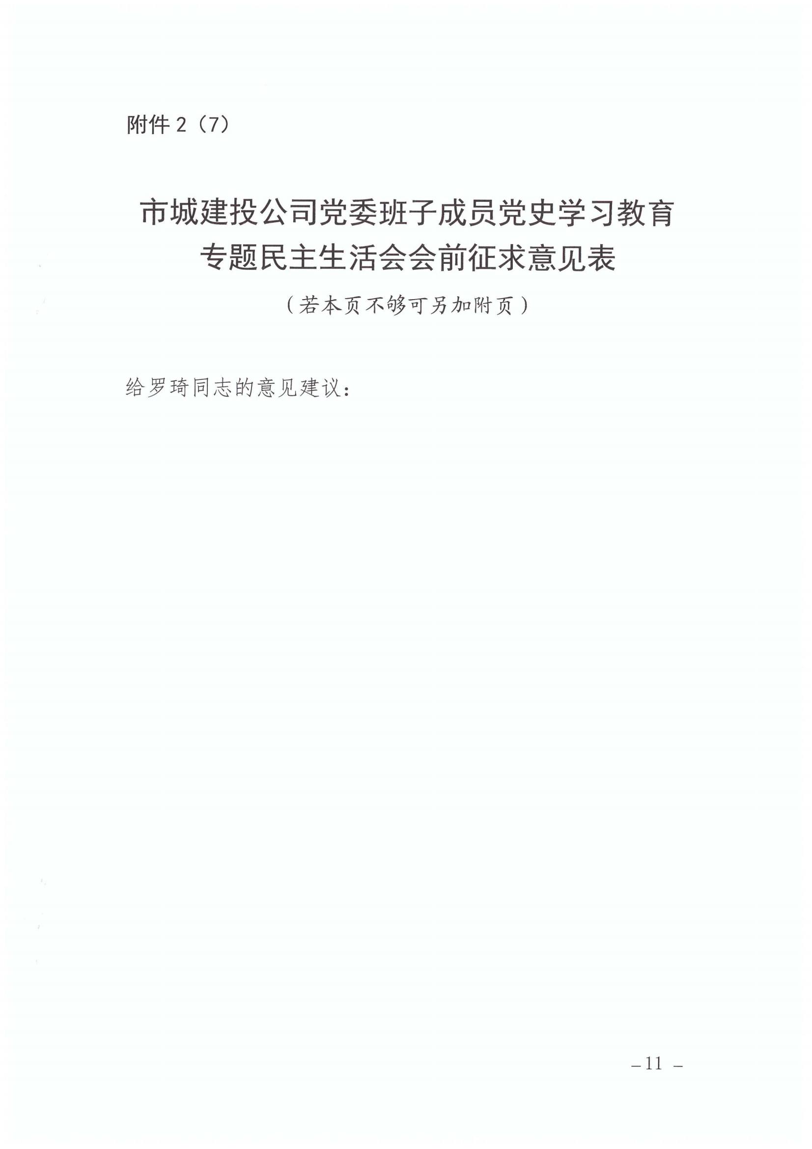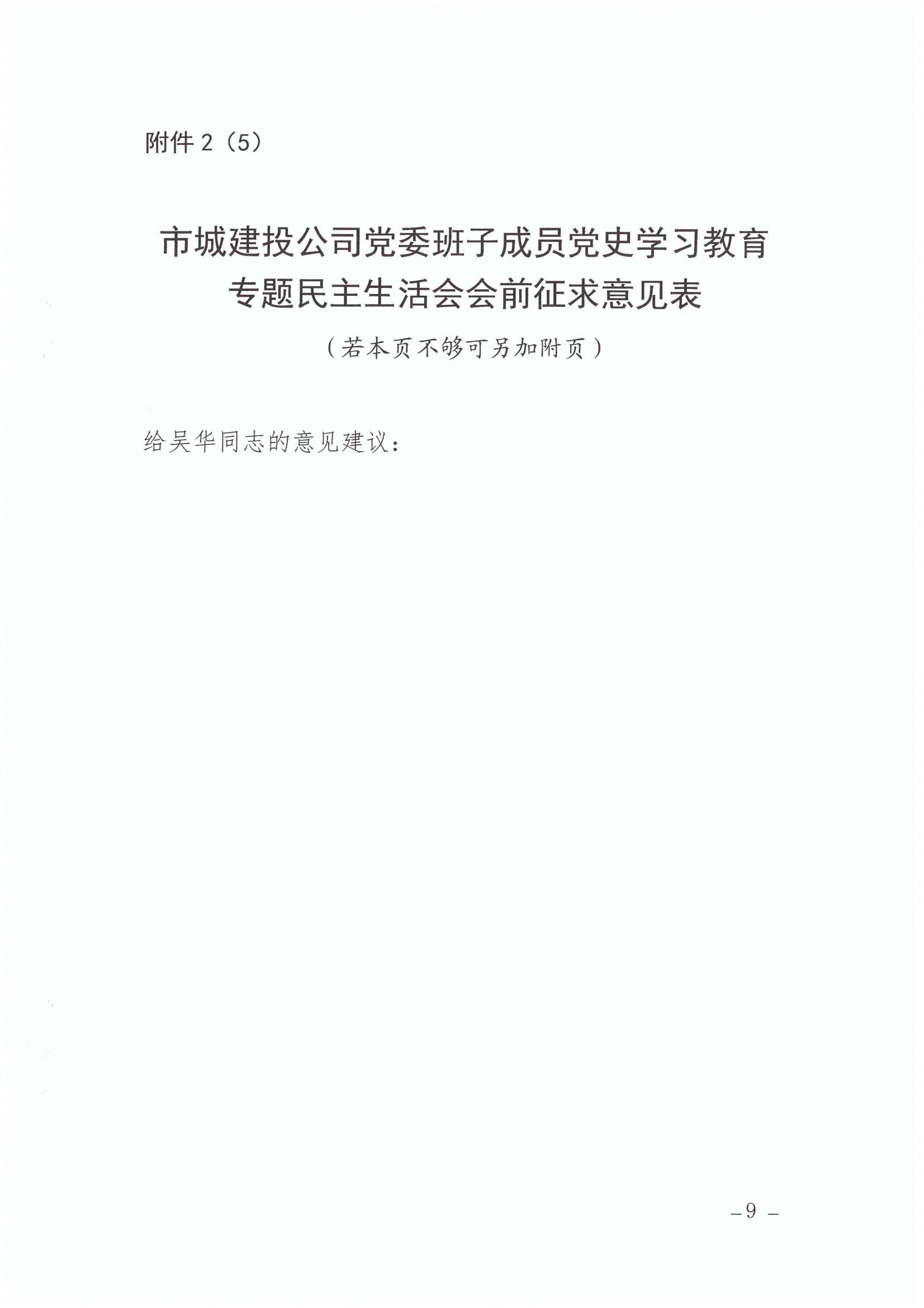 關(guān)于做好市城建投公司黨委班子黨史學(xué)習(xí)教育專題民主生活會會前征求意見工作的通知